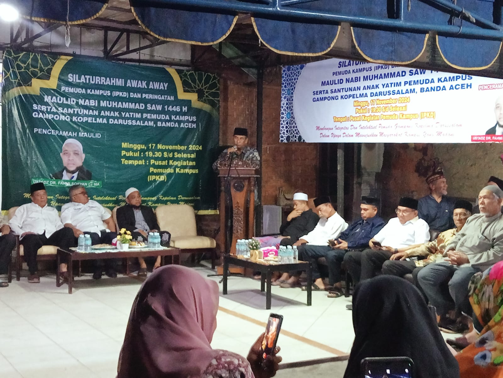 JBNN.Net,Banda Aceh| Suasana Pusat Kegiatan Pemuda Kampus (IPKD) di Gampong Kopelma Darussalam penuh kehangatan. Acara Silaturahmi Awak Awai, peringatan Maulid Nabi Muhammad SAW 1446 H, serta santunan anak yatim dihadiri berbagai tokoh penting, mulai dari akademisi hingga calon pemimpin Aceh masa depan. Ahad malam, 17 November 2024.