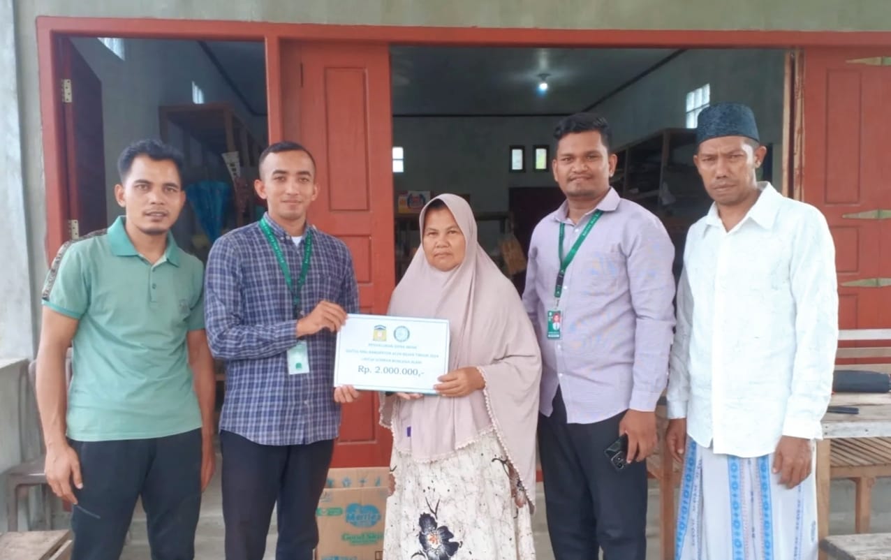 Tenaga Profesional Baitul Mal Aceh Besar, Farhan, secara langsung menyerahkan bantuan senilai Rp 2 juta kepada Fatimah Wati pada hari ini, Selasa, 25 Juni 2024.