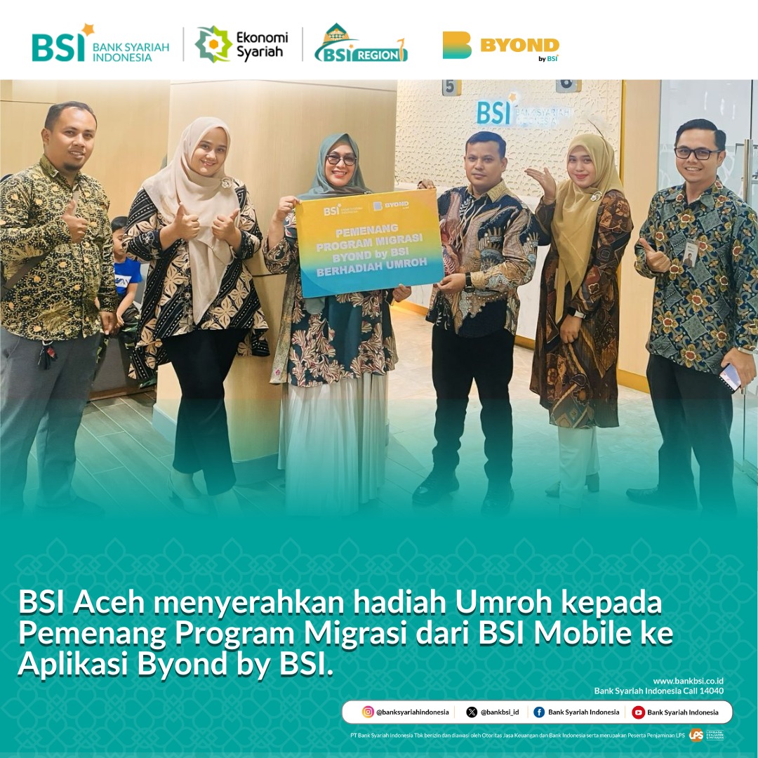 Regional CEO BSI Aceh, Wachjono menyampaikan “Kami sangat mengapresiasi antusiasme nasabah yang berpartisipasi dalam program ini. Selain memberikan hadiah Umroh, kami juga berharap melalui aplikasi Byond by BSI, nasabah dapat merasakan kemudahan transaksi digital yang lebih modern dan efisien,”