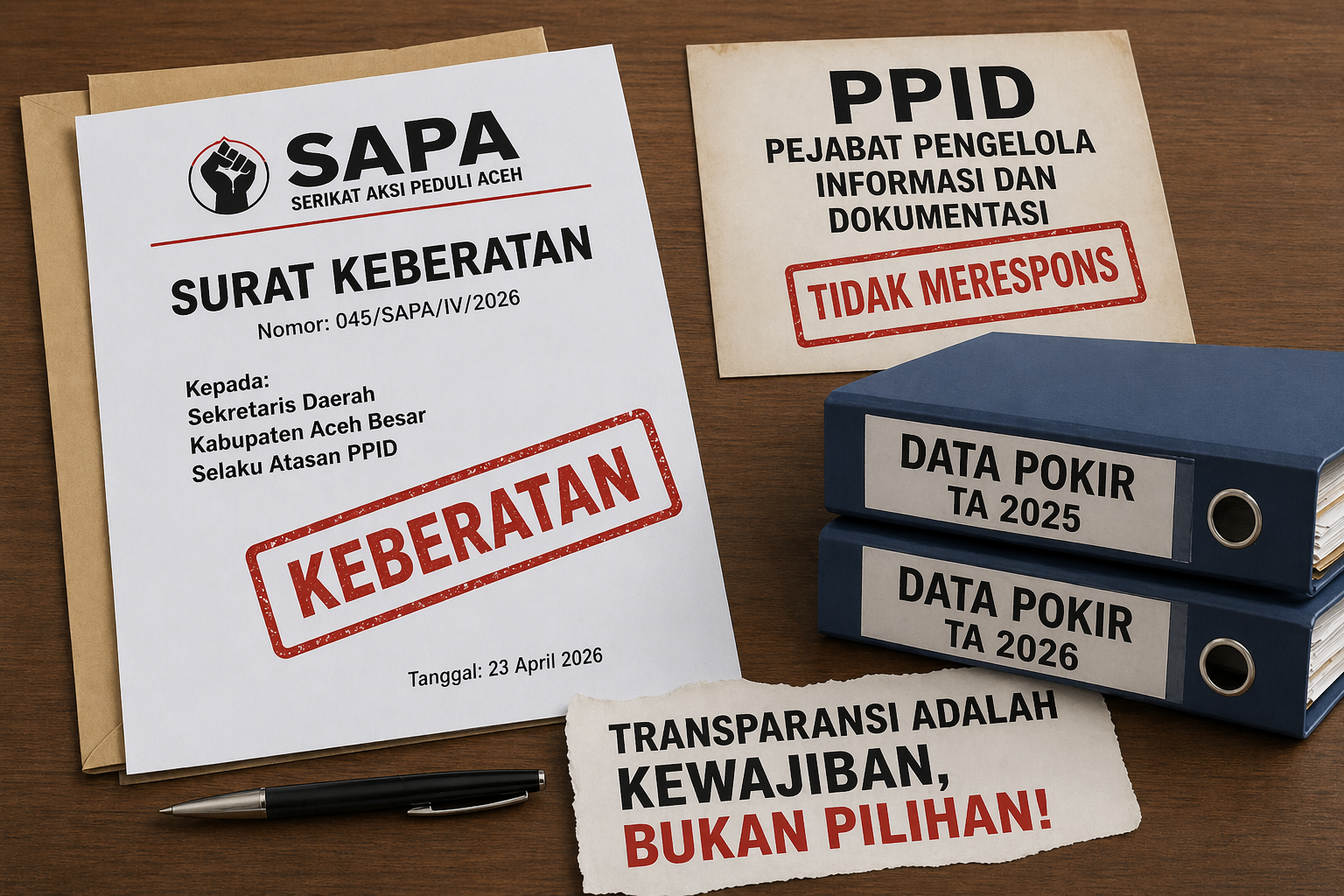 Surat keberatan bernomor 045/SAPA/IV/2026 tersebut dilayangkan pada 23 April 2026. Dalam surat itu, SAPA menjelaskan bahwa pihaknya telah lebih dahulu mengajukan permohonan informasi kepada PPID Bappeda Aceh Besar terkait data Pokok Pikiran (Pokir) Tahun Anggaran 2025 dan 2026 melalui surat tertanggal 8 April 2026.