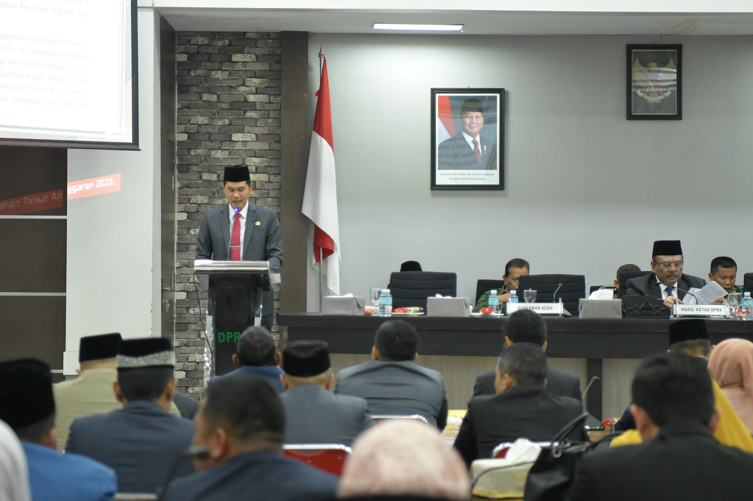 Rapat paripurna dipimpin langsung oleh Wakil Ketua DPRA, H. Ali Basrah, S.Pd., MM, didampingi unsur pimpinan dewan lainnya. Hadir pula para anggota DPRA dari berbagai komisi dan fraksi, unsur Forum Komunikasi Pimpinan Daerah (Forkopimda), tokoh masyarakat, para akademisi, serta mitra kerja eksekutif dan legislatif yang menjadi bagian penting dalam penyusunan serta pengawasan pembangunan daerah.