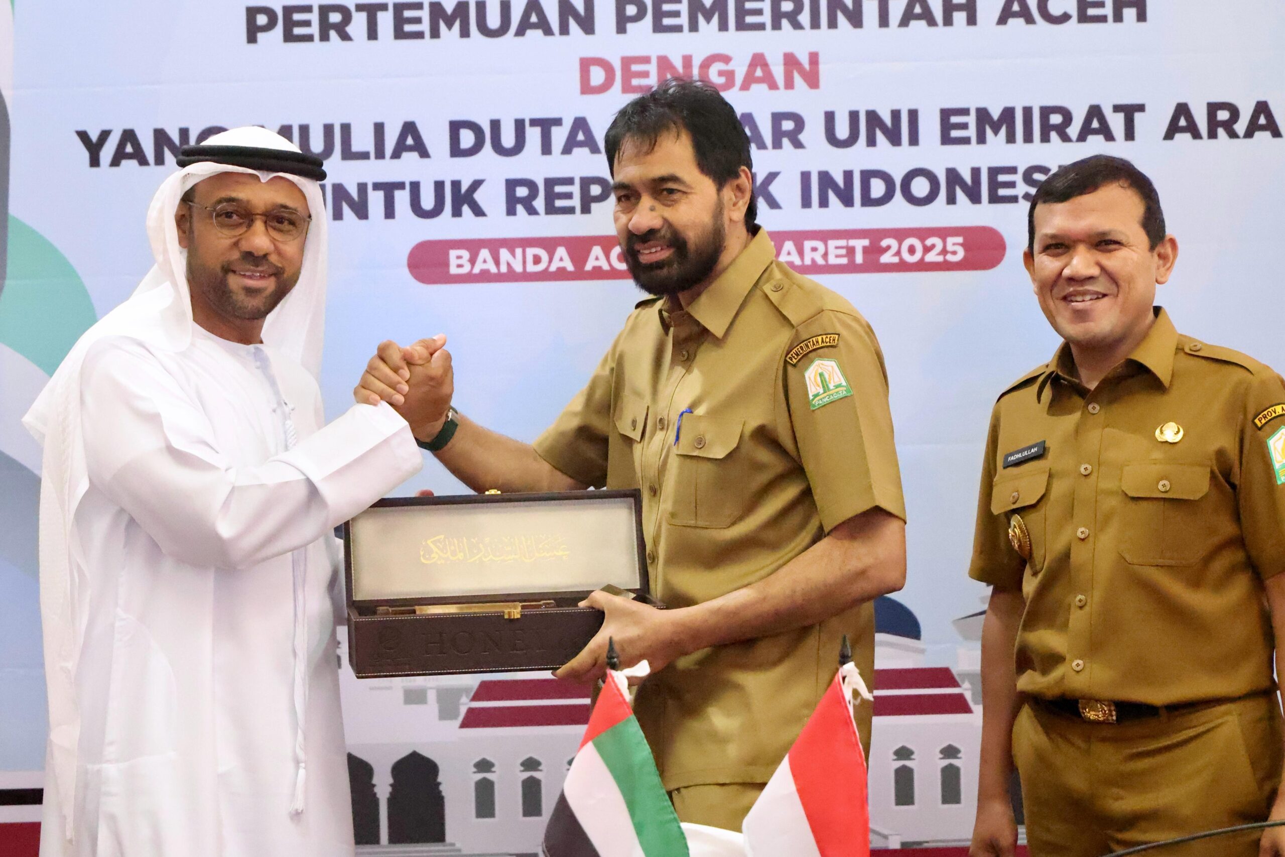 Dubes Al Dhaheri menegaskan bahwa hubungan antara Indonesia dan UAE telah terjalin erat selama 40 tahun terakhir. Sementara itu, hubungan dengan Aceh mulai semakin erat sejak bencana tsunami 2004. “Kami membangun 500 unit rumah bantuan untuk korban tsunami saat itu, dan kami berkomitmen untuk memberikan bantuan lain saat ini dan ke depan,” tambahnya.