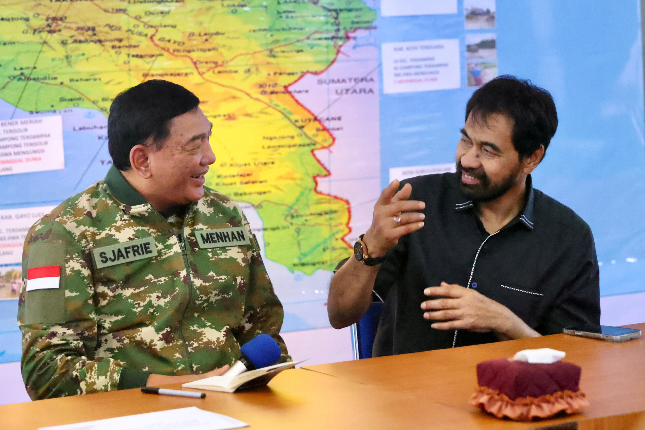 Menhan juga menanyakan kesiapan pemerintah Aceh untuk penanganan bencana dan apakah diperlukan status bencana dinaikkan menjadi darurat nasional. Gbernur Mualem menjawab bahwa skala kerusakan sudah sangat luas.