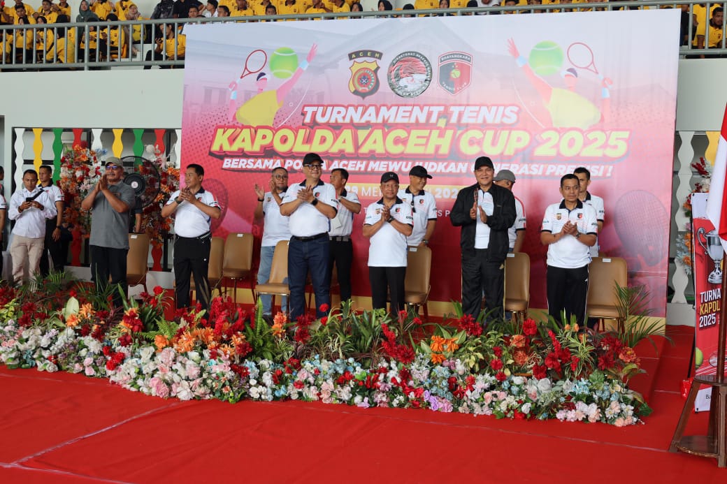 Di akhir sambutannya, Irjen Achmad Kartiko menyampaikan apresiasi dan terima kasih yang setinggi-tingginya kepada seluruh panitia serta semua pihak yang telah berkontribusi dalam menyukseskan Turnamen Tenis Lapangan Kapolda Aceh Cup 2025.