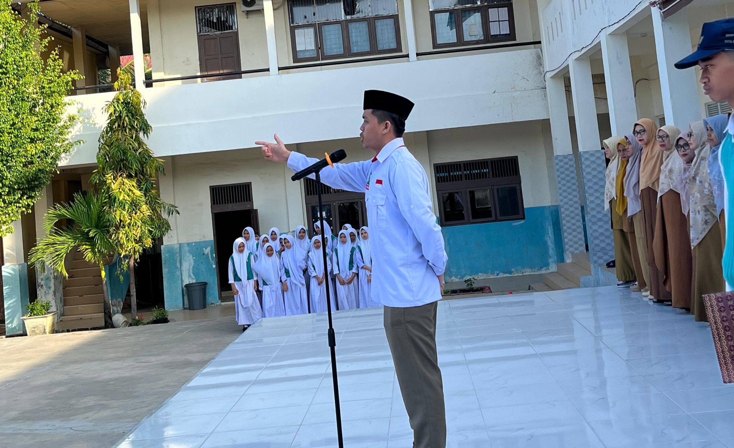 JBNN.Net | Ketua Kesatuan Aksi Mahasiswa Muslim Indonesia Banda Aceh (KAMMI Banda Aceh), Khairul Rahmad S.Ag sampaikan tentang bahaynya HIV/AIDS saat menjadi pembina upacara di SMP Negeri 18 Kota Banda Aceh. kegiatan ini dilaksanakan dalam rangka upacara Bendera yang di adakan setiap seminggu sekali, Senin (20/01/2025).