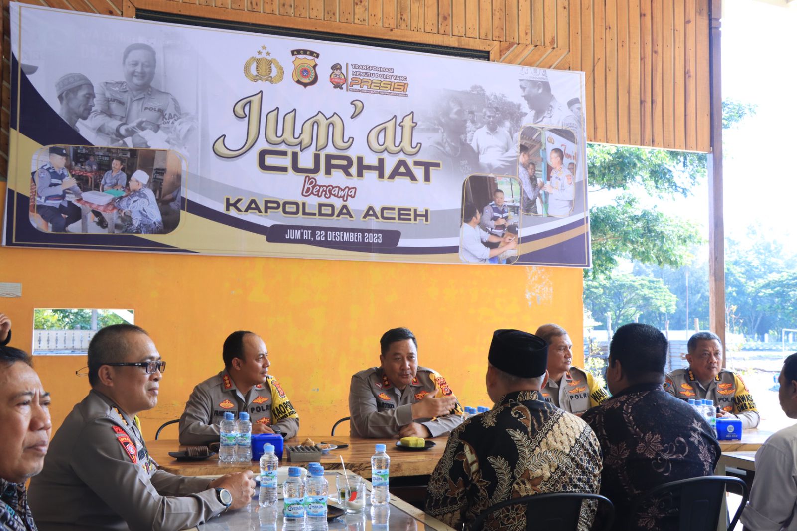 Banda Aceh | Kapolda Aceh Irjen Achmad Kartiko didampingi Wakapolda Brigjen Armia Fahmi dan Kapolresta Banda Aceh Kombes Fahmi Irwan Ramli melaksanakan Jumat Curhat perdana di MZ Kupi Lamprit, Kota Banda Aceh, Jumat, 22 Desember 2023.