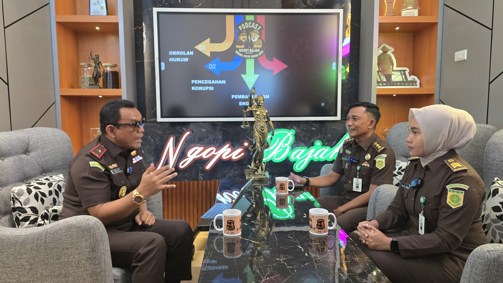 Kajati Aceh Resmikan Ruangan Podcast Ngopi Bajak dan Jadi Narasumber Perdana