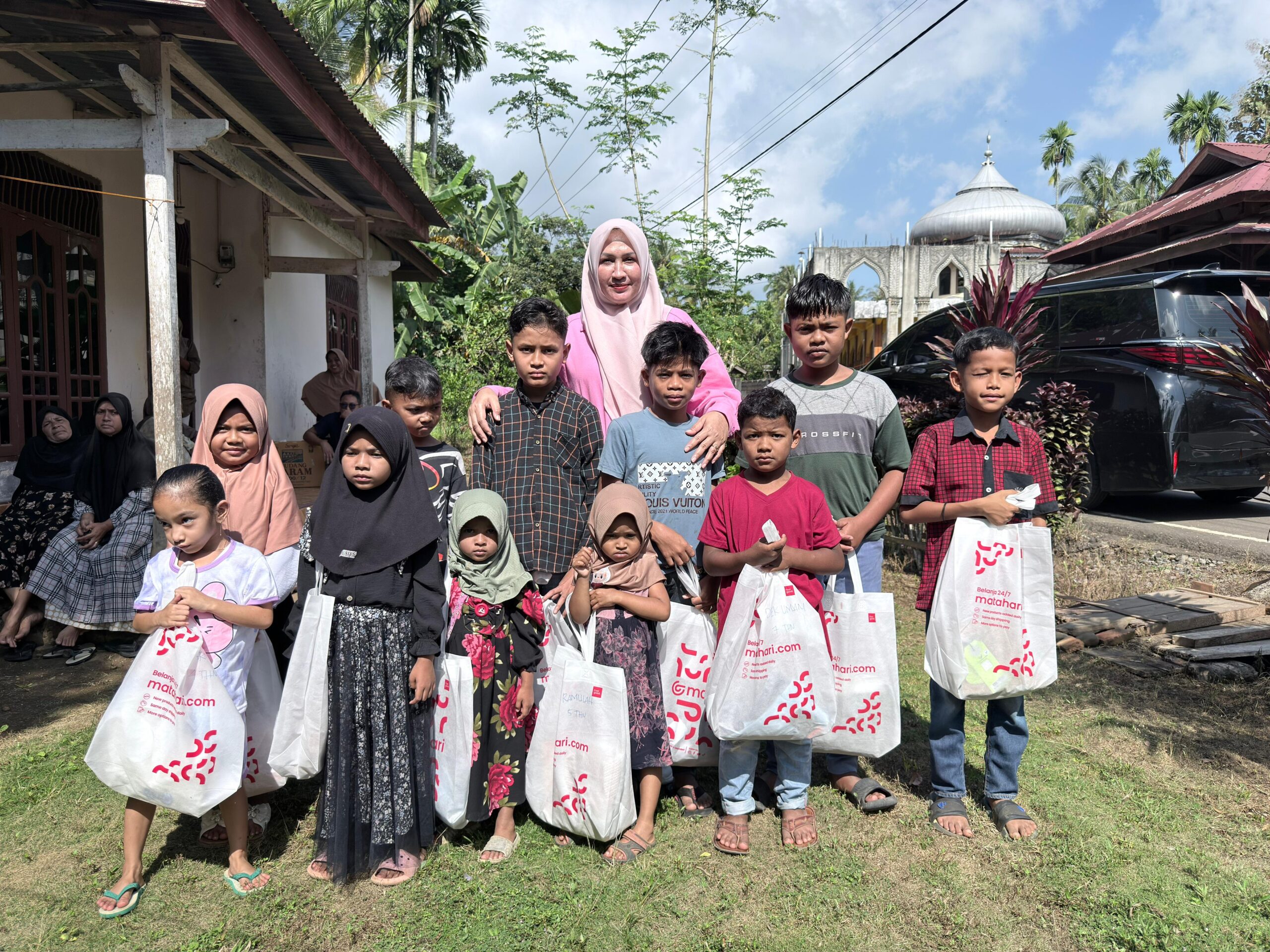 Hari ini, istri Gubernur Aceh itu menyempatkan diri menemui anak-anak korban banjir dan anak yatim di Gampong Dayah Mesjid, Kecamatan Kuta Blang, untuk menghibur mereka serta menyerahkan santunan dan baju lebaran, Rabu (18/3/2026).
