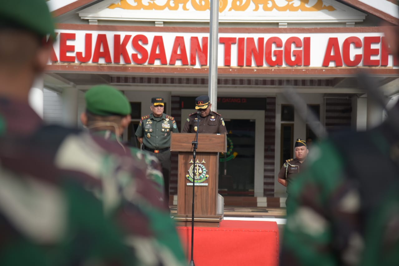 Keberadaan pengamanan personel TNI di lingkungan Kejaksaan Tinggi dan Kejaksaan Negeri di wilayah Aceh bersifat sangat strategis, mengingat perkembangan dinamika penegakan hukum yang begitu cepat. Setelah apel, kegiatan dilanjutkan dengan Penandatanganan Perjanjian Kerja Sama (PKS) antara Kejaksaan Tinggi Aceh dan Kodam Iskandar Muda.