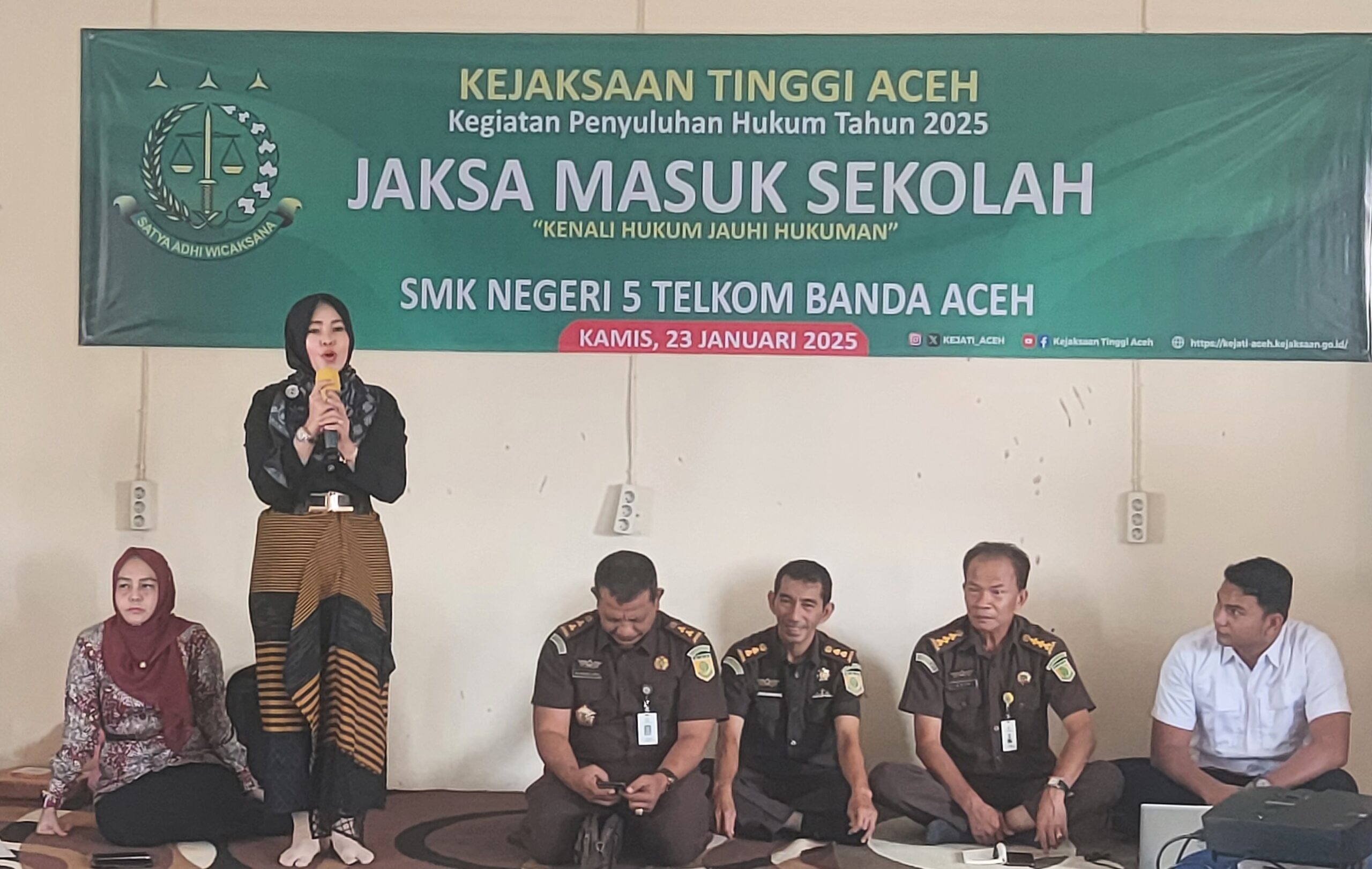 “Alhamdulillah, sosialisasi Jaksa Masuk Sekolah ini sangat bermanfaat, terutama bagi anak-anak kami yang kelak akan menjadi generasi penerus. Mereka harus memahami hukum, baik sebagai siswa, alumni, maupun sebagai individu yang terjun ke dunia usaha dan industri,” ujar Herlina saat menyampaikan sambutan JMS di SMK Negeri 5 Telkom Banda Aceh.