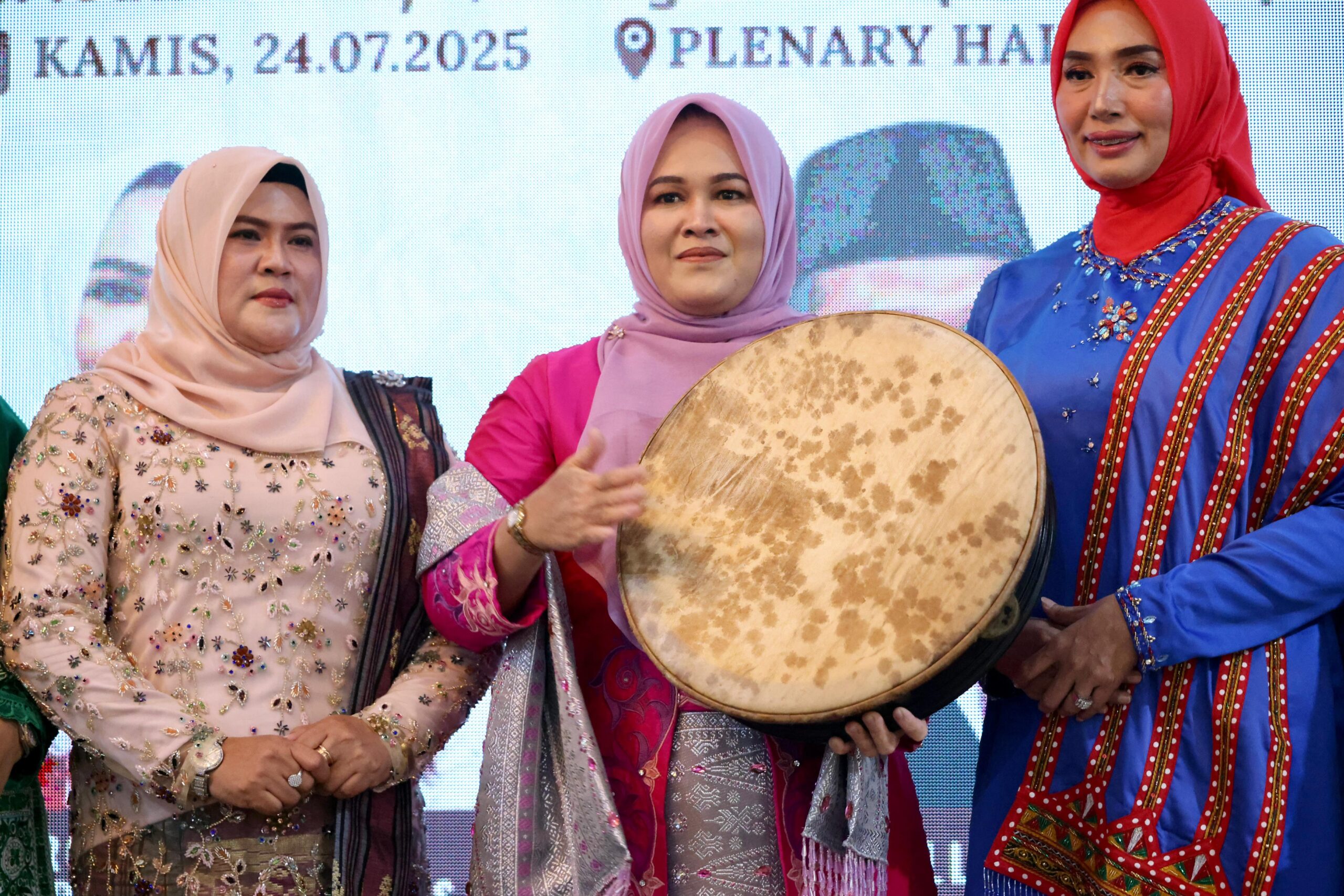Acara dibuka dengan penabuhan rapa’i oleh Ny. Mukarramah Fadhlullah sebagai tanda dimulainya kegiatan. Mengusung tema “Kebaya Warisan Budaya, Langkah Maju Perempuan Indonesia,” Mukarramah menyampaikan bahwa peringatan Hari Kebaya Nasional ke-2 ini adalah momen penting untuk memperkuat identitas budaya serta mendorong peran perempuan dalam melestarikan aset budaya Indonesia.