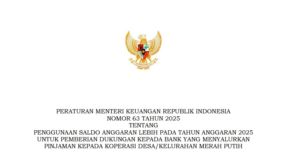 Keputusan itu tertuang dalam Peraturan Menteri Keuangan (PMK) Nomor 63 Tahun 2025 tentang Penggunaan SAL pada Tahun Anggaran 2025 untuk Pemberian Dukungan kepada Bank yang Menyalurkan Pinjaman kepada Kopdes/Kel Merah Putih.