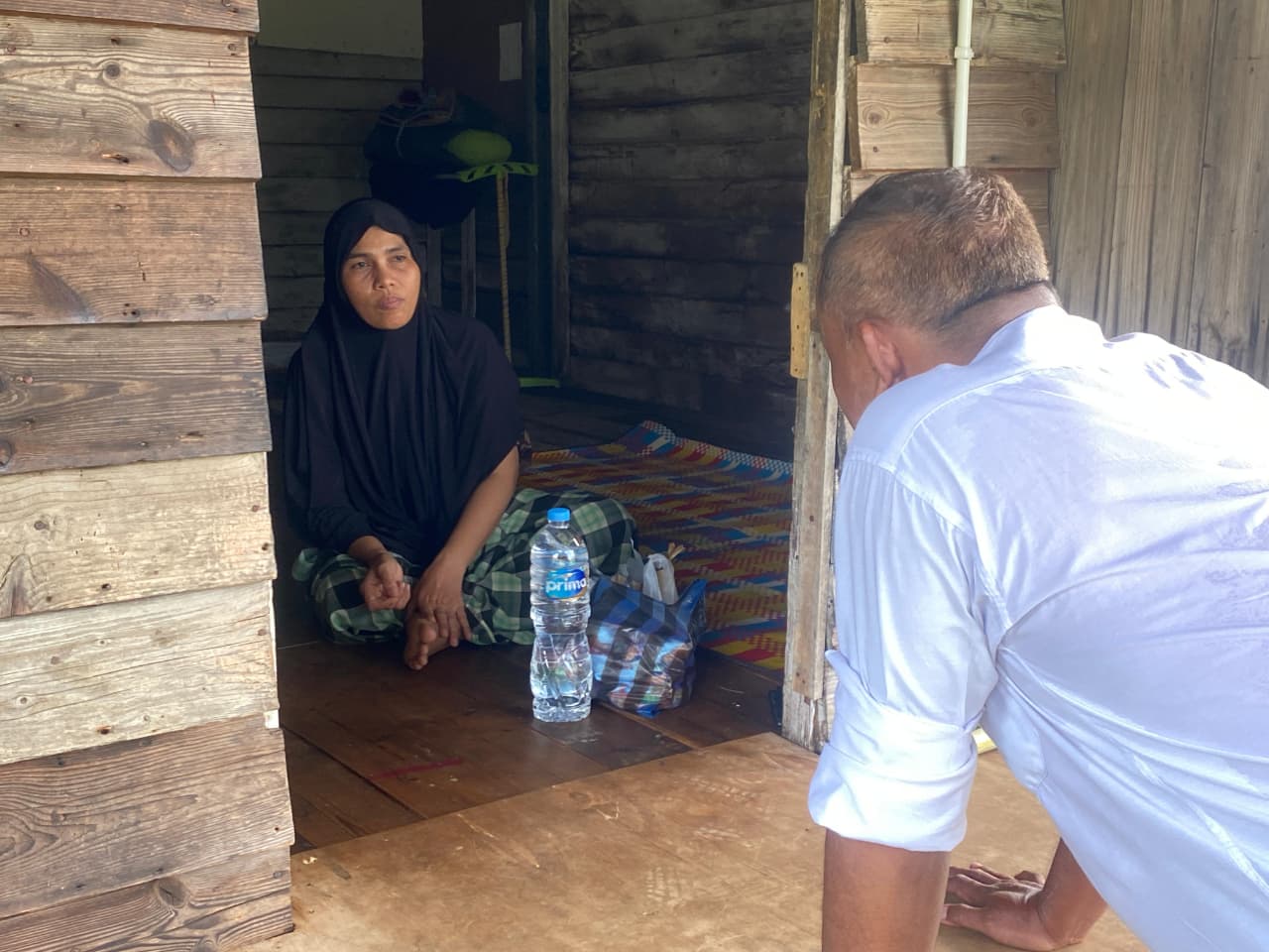 Melihat kondisi Wardiah yang memprihatinkan di rumah kayunya, petugas langsung bergegas membelikan Nasi Bungkus (makanan siap saji), Air Mineral untuk kebutuhan mendesak sang ibu, sebut Iptu Tea.