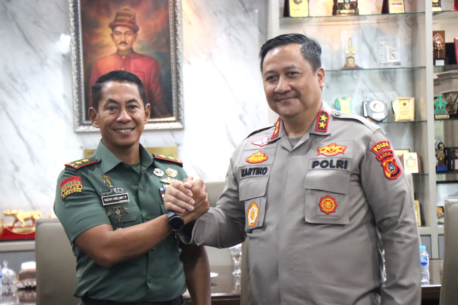 JBNN.Net | Pangdam IM Mayjen TNI Novi Helmy Prasetya, S. I. P., M. I. P, menyambut kedatangan Kapolda Aceh Irjen Pol. Achmad Kartiko, S. I. K., M. H, bersama rombongan, di Makodam IM, Selasa (10/10/2023) pagi.
