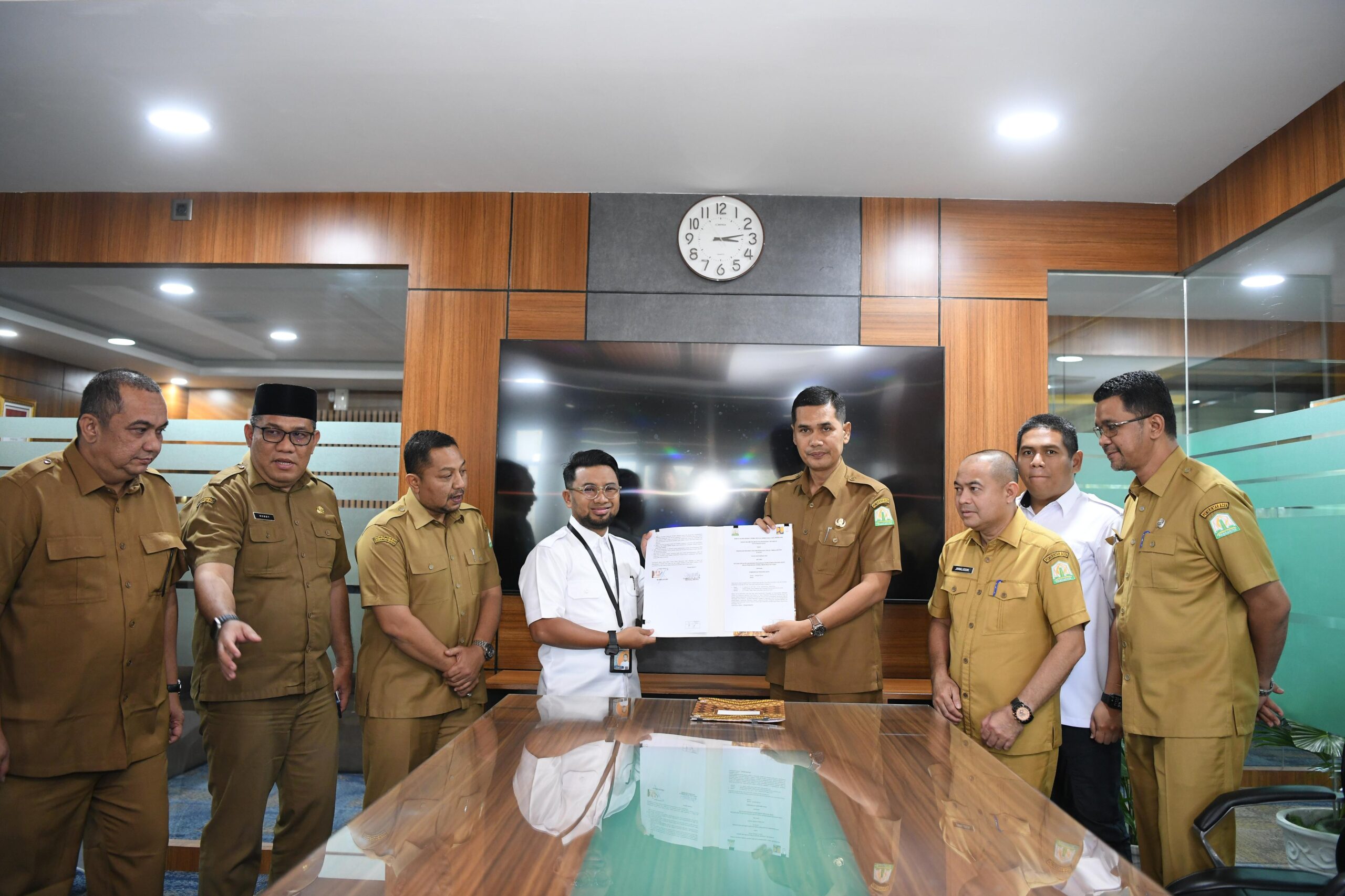 JBNN.Net | Plt Sekda Aceh M Nasir, dan Kepala Satker Prasarana Permukiman Provinsi Aceh, Larap, melakukan penandatanganan dokumen serah terima sementara pengelolaan aset venue Kolam Renang Tirta Raya dari Balai Prasarana Permukiman Wilayah (BPPW) Aceh kepada Pemerintah Aceh, di Ruang Rapat Sekda Aceh, Senin, (24/3/2025).