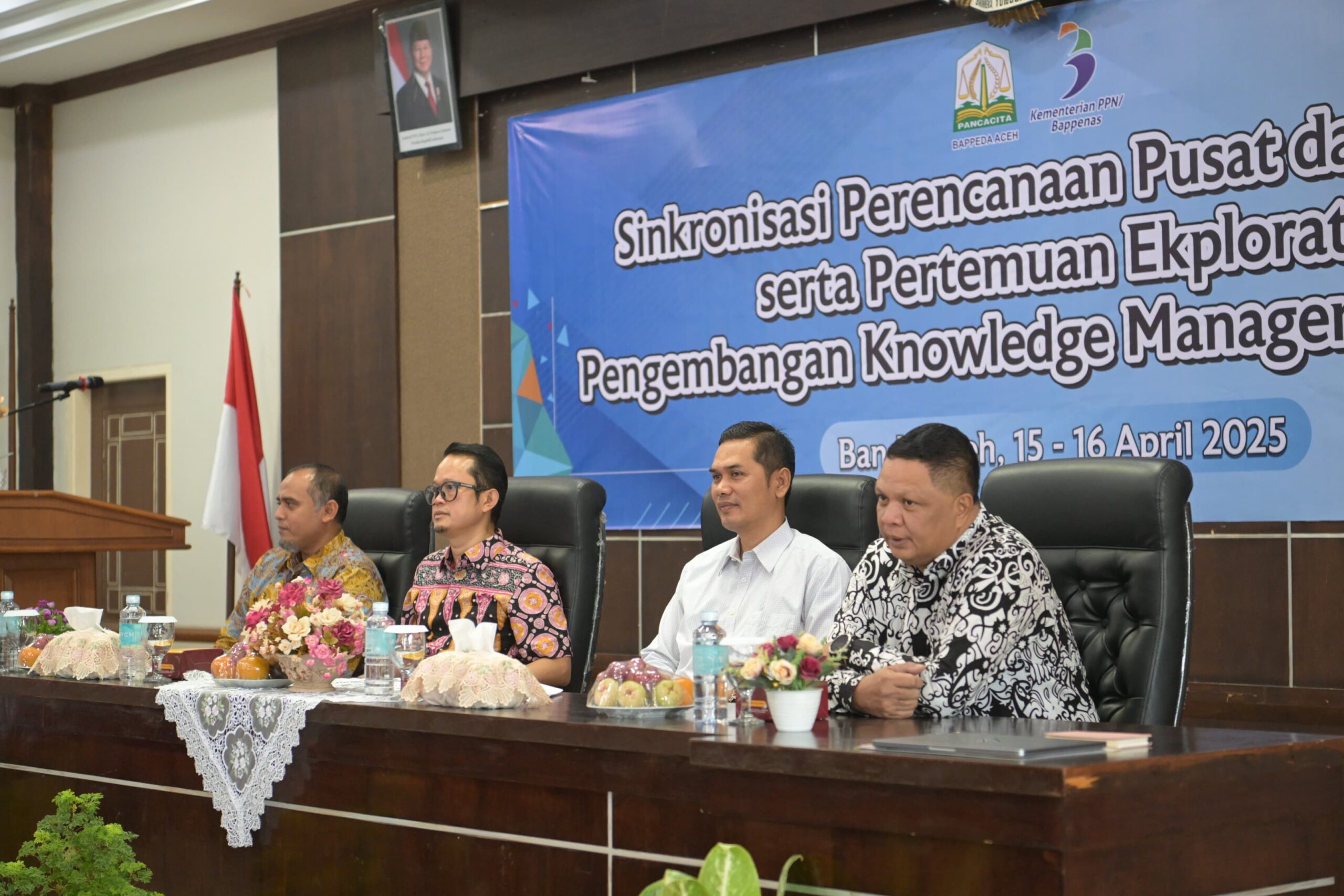 Plt. Sekretaris Daerah Aceh, M. Nasir membuka acara sinkronisasi Perencanaan Pusat dan Daerah serta Pertemuan Ekploratif Pengembangan Knowledge Management Center Di Aula Prof. Masjid Ibrahim Bapeda Banda Aceh, 15/4/2025