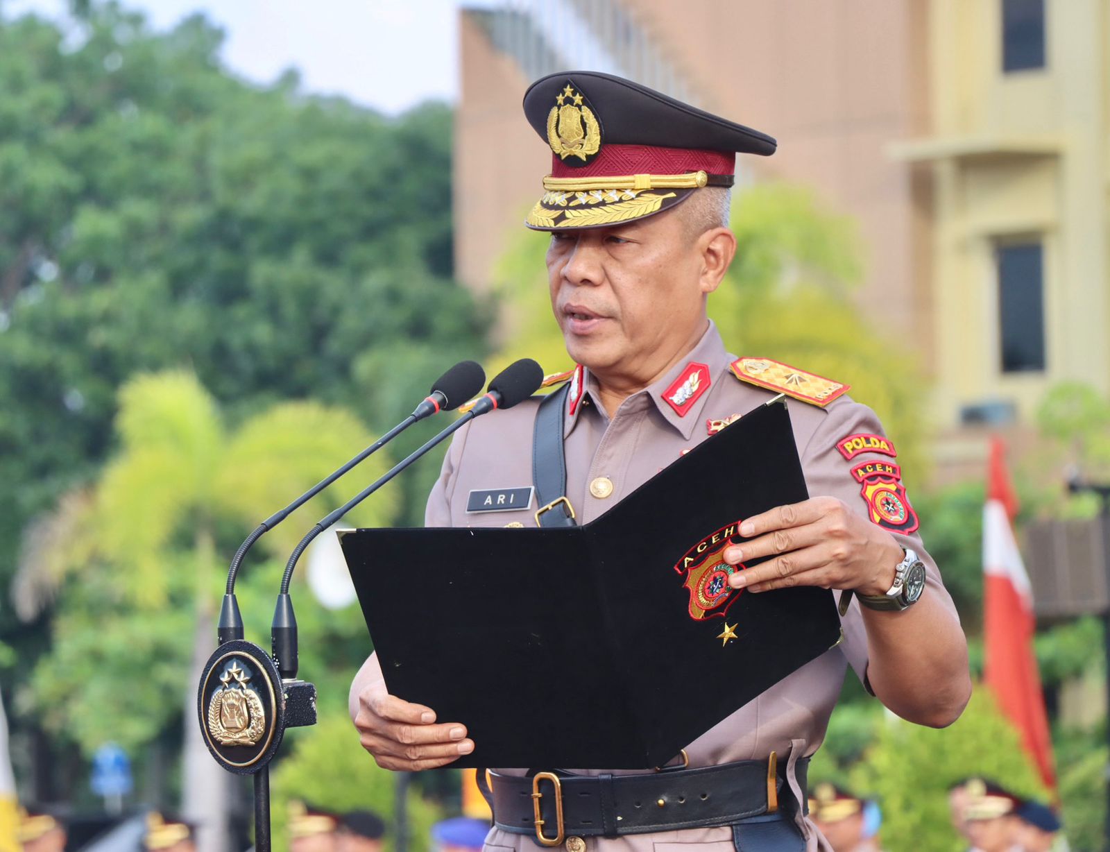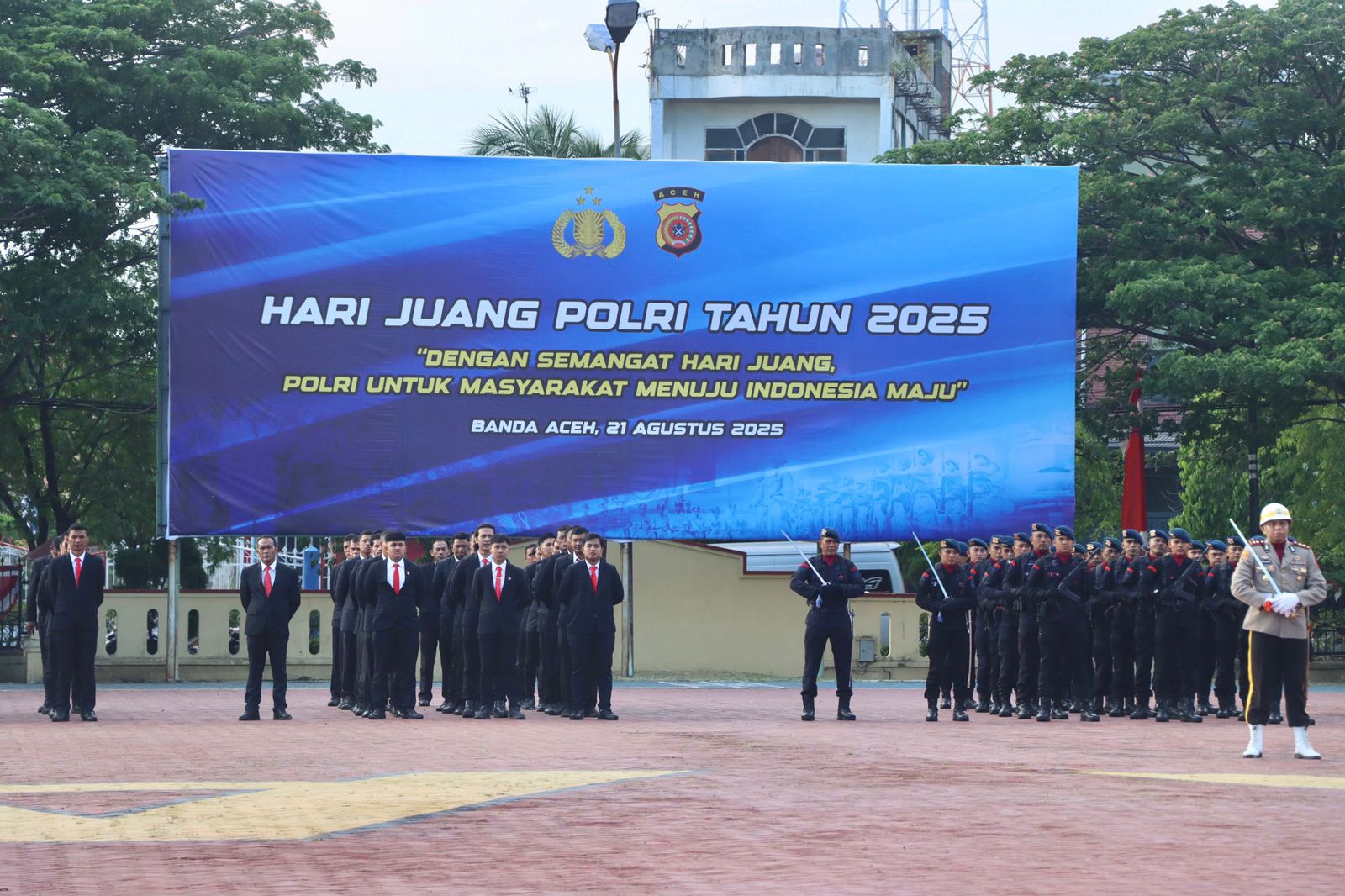 JBNN.net | Kepolisian Daerah (Polda) Aceh menggelar upacara Hari Juang Polri di lapangan apel Mapolda Aceh, Kamis, 21 Agustus 2025. Upacara dipimpin Wakapolda Aceh Brigjen Ari Wahyu Widodo dan diikuti seluruh personel.