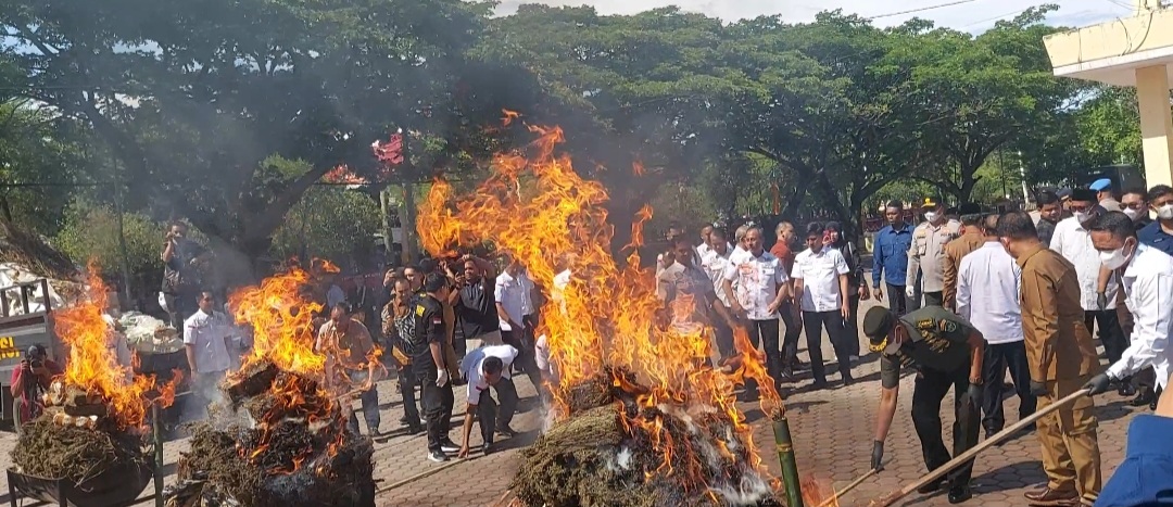 Barang Bukti Ganja 1,2 Ton dimusnahkan (Foto:Jbnn.net)