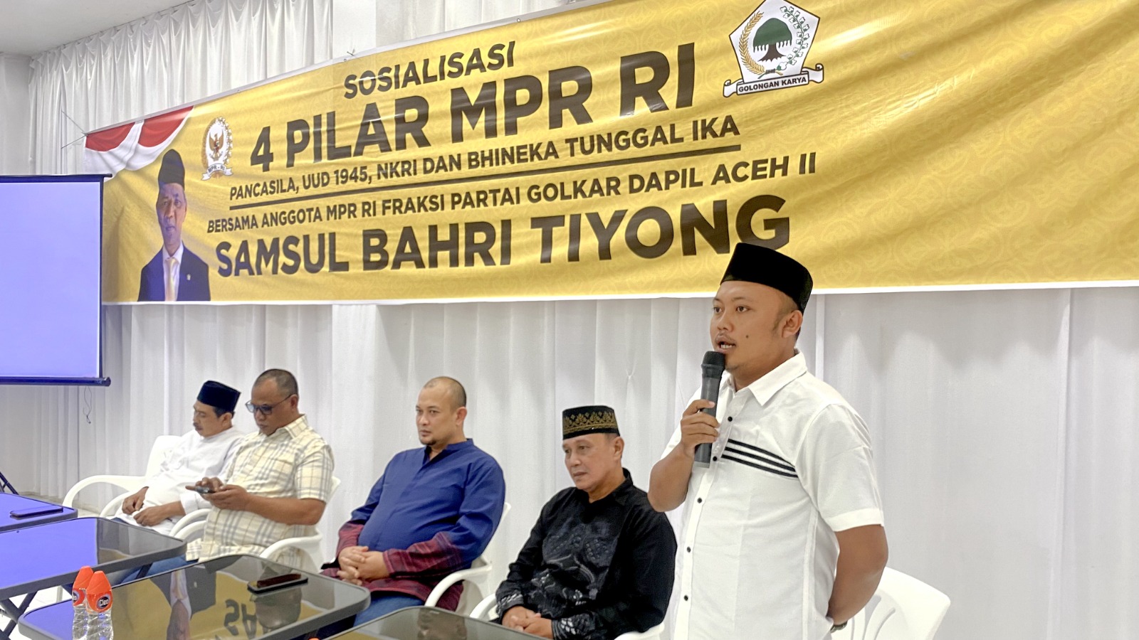 Sosialisasi 4 pilar itu didampingi Ketua DPD II Partai Golkar Aceh Tamiang, Adriadi, Muhammad Rizky Anggota DPR Aceh komisi III yang juga ketua fraksi partai Golkar serta diikuti lapisan masyarakat yang hadir.