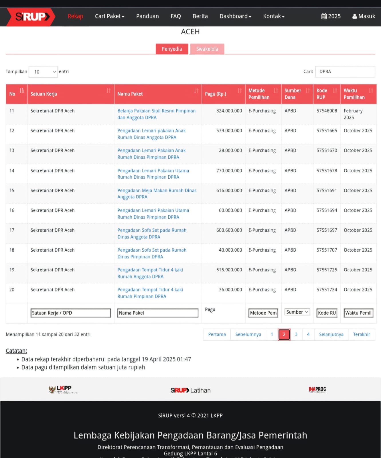 Informasi dari aplikasi Sistem Informasi Rencana Umum Pengadaan (SiRUP) dan Layanan Pengadaan Secara Elektronik (LPSE) mencatat bahwa anggaran untuk pengadaan mobil dinas Ketua DPRA mencapai Rp3,3 miliar, dan untuk Wakil Ketua mencapai Rp5,4 miliar.