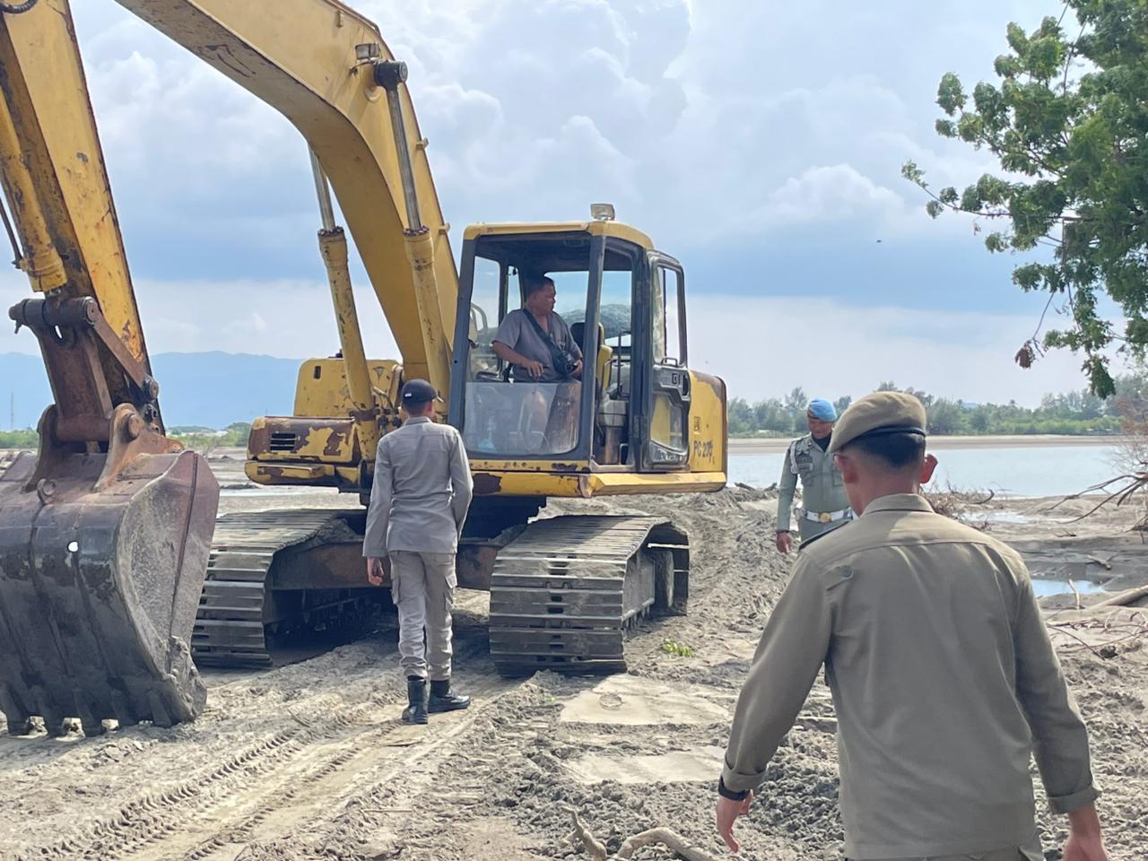 Satpol PP dan WH Aceh Besar Hentikan Aktivitas Pengurukan Pasir Laut di Baitussalam
