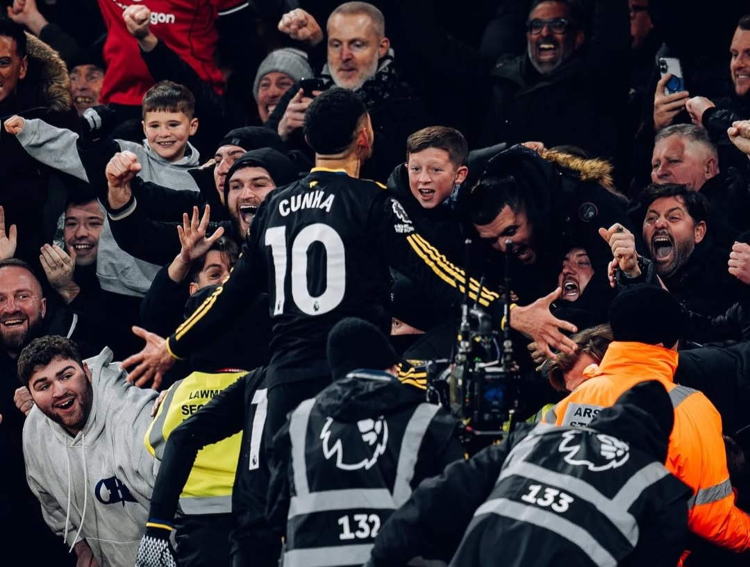 Gol indah Matheus Cunha di menit-menit akhir memastikan Setan Merah pulang membawa tiga poin berharga dari markas pemuncak klasemen.