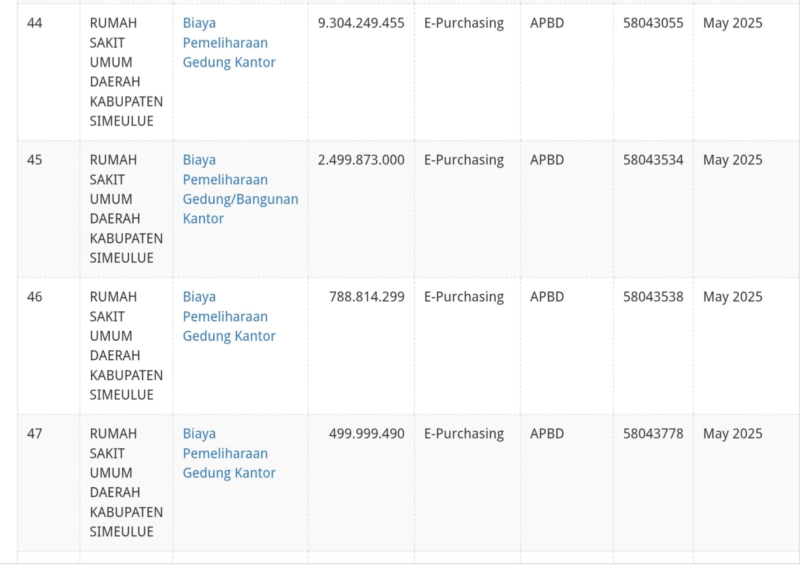 1. Pemeliharaan Gedung Kantor RSUD Simeulue – Rp9,304 miliar