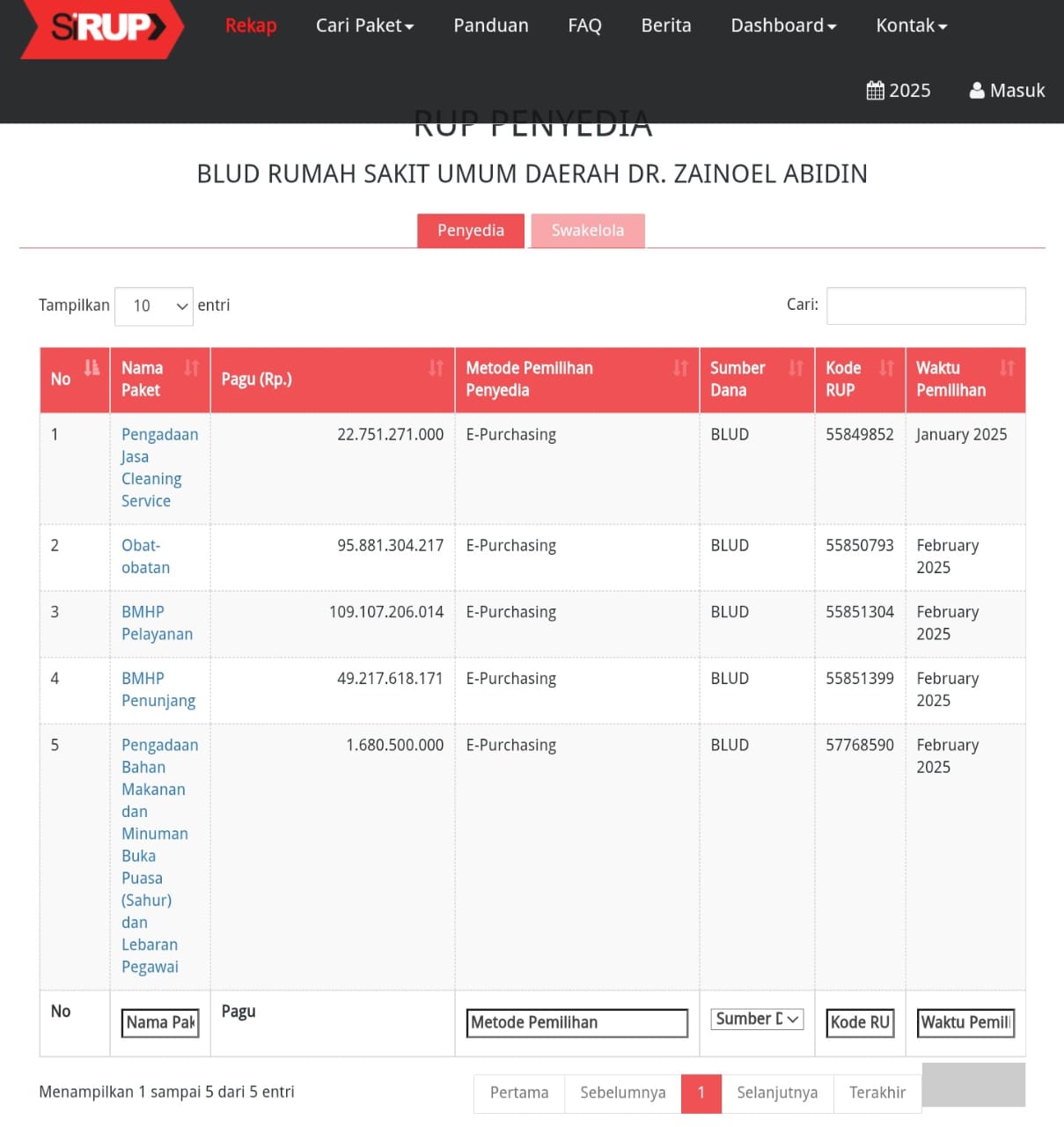 JBNN.Net | Transparansi Tender Indonesia TTI meminta Direktur Rumah Sakit Zainal Abidin Banda Aceh segera umumkan semua kegiatan pada Rumah Sakit tersebut. Jika dilihat dari yang tayang di SiRUP RSZA hanya 5 Paket kegiatan yaitu Pengadaan Jasa Clening Service Rp.22.751.271.000, Obat obatan Rp.95.881.304.217, BMHP Pelayanan Rp.109.107.206.014, Pengadaan Makan minum Pegawai Rp.1.680.500.000.
