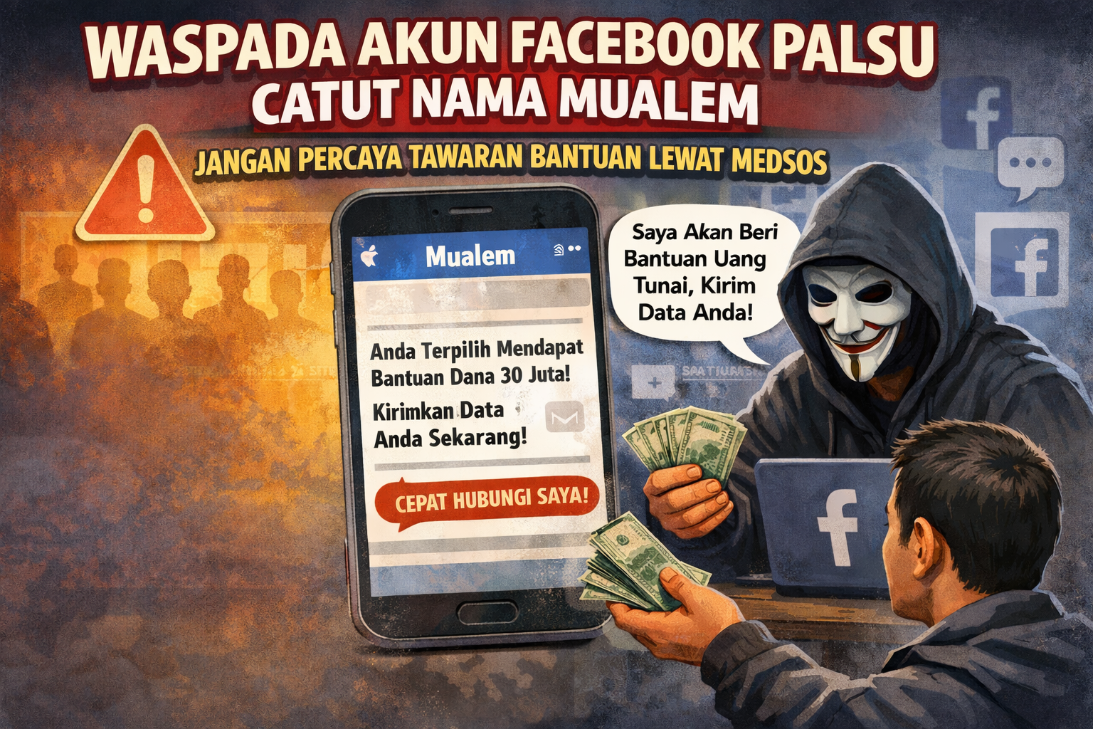 Ia meminta masyarakat untuk tidak mudah percaya terhadap informasi atau tawaran bantuan yang disampaikan melalui media sosial, terlebih jika meminta data pribadi atau persyaratan tertentu.